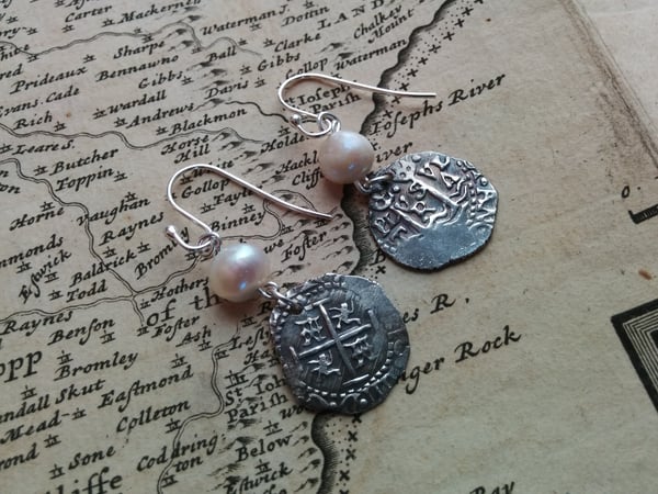 Caribbean Pearl & Silver Cob Coin Earrings